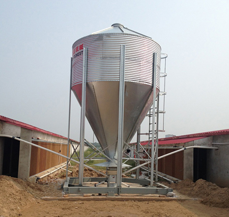 自動食槽(箱) 集約化和現(xiàn)代化養(yǎng)豬從哺乳仔豬的補飼直到斷乳后的幼豬、后備豬、繁殖母豬以及生長肥育豬均采用自由采食的飼養(yǎng)方式,因此,需要不間斷供料的自動食槽。自動食槽就是在食槽的上部安放一個飼料貯存箱,貯存一定量的干粉料或顆粒料,在豬采食時貯存箱內(nèi)的飼料靠重力不斷流入食槽內(nèi), 供豬采食。自動食槽的優(yōu)點是,自動限制落料,吃多少落多少,不撒漏飼料,干凈衛(wèi)生,自由采食時有間隔欄限位,豬只不爭斗,有利于生長發(fā)育,便于實現(xiàn)機(jī)械化和自動化添料,提高勞動效率。常用的自動食槽有長方形和圓形兩種,采用長方形者居多,每一種又根據(jù)豬只的大小做成幾種規(guī)格。①長方形自動食槽。分單面和雙面兩種。單面具有靈活性,但占地面積大,投資較多。雙面的節(jié)約投資,管理也比較方便。長方形自動食槽常用鍍鋅鐵板或冷軋鋼板制造, 也可用半金屬半鋼筋水泥或全鋼筋水泥制造。半金屬半鋼筋水泥自動食槽的底槽、側(cè)板用鋼筋水泥部件,其他部分為金屬結(jié)構(gòu)。用全部或部分鋼筋水泥件做的自動食槽造價低,壽命長,但較笨重。②圓形自動食槽。制作原理與長方形的基本相同,飼料桶可以上下移動和轉(zhuǎn)動,以便控制和促進(jìn)飼料流落。通常,自動食槽的圓桶用不銹鋼板制造,而底座則用鑄鐵或鋼筋水泥制造。